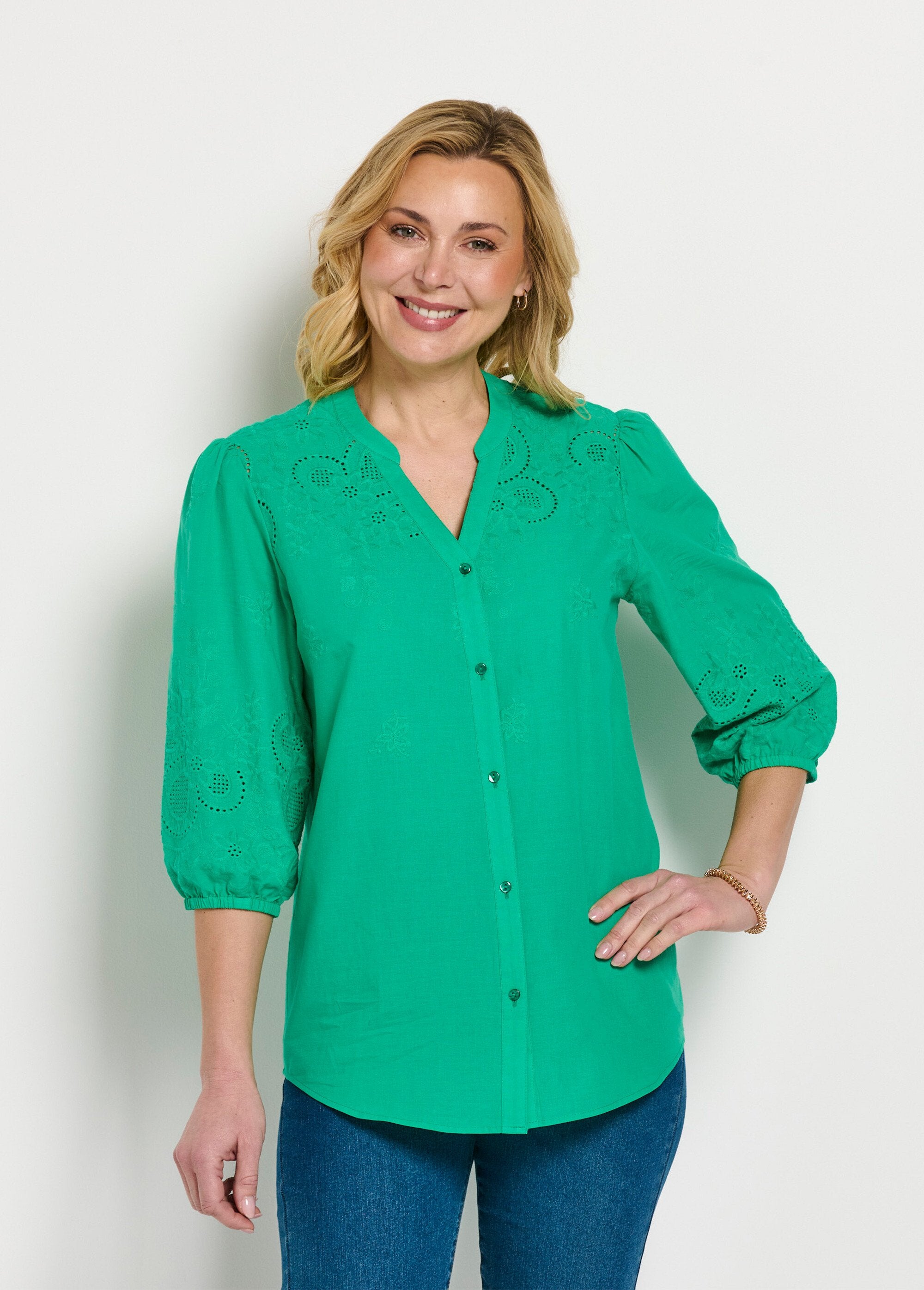 Blusa_larga_de_algodón_bordada_con_manga_3/4_Verde_FA1_slim