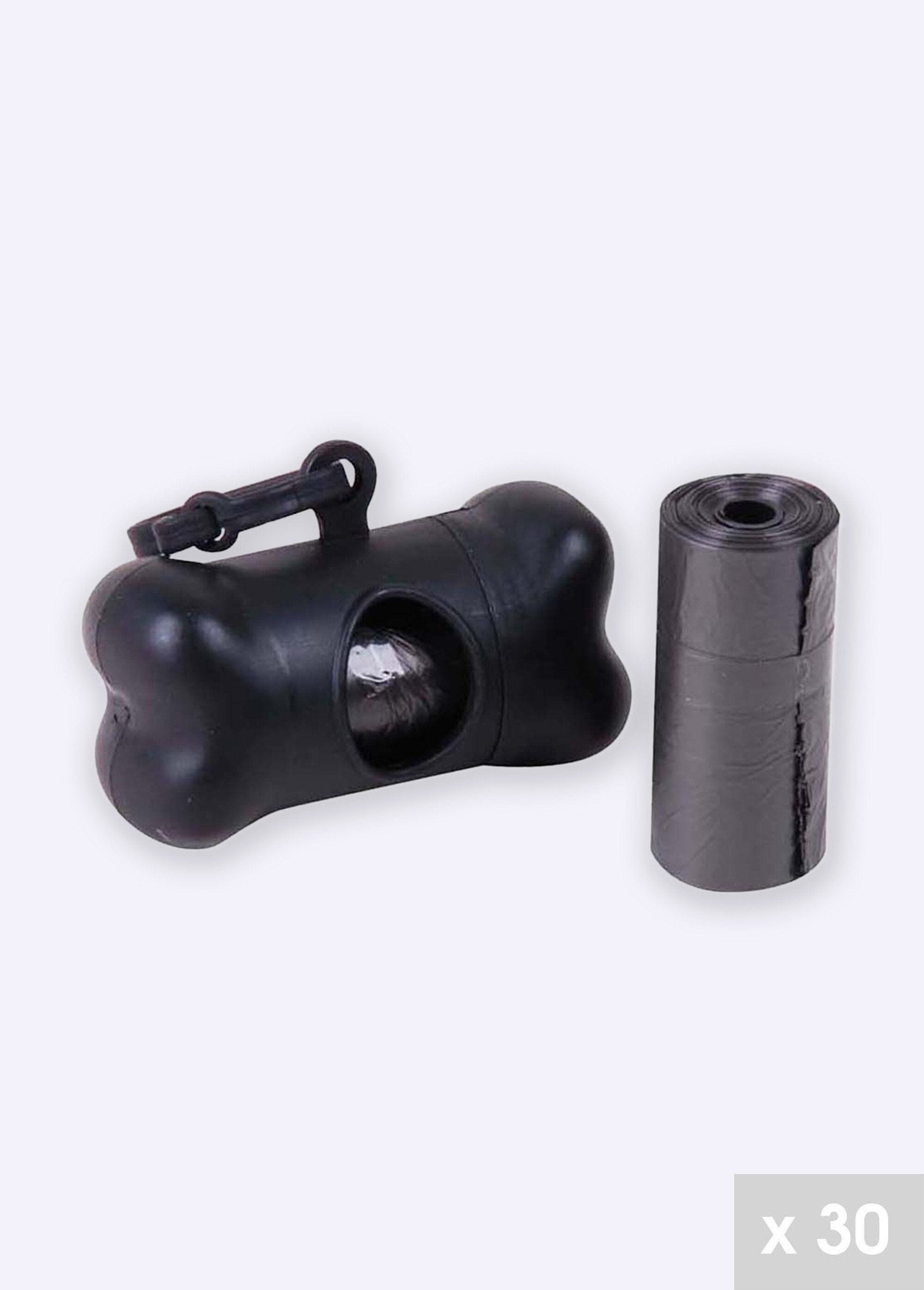 Dispensador de bolsas para excrementos + 30 bolsas  Negro