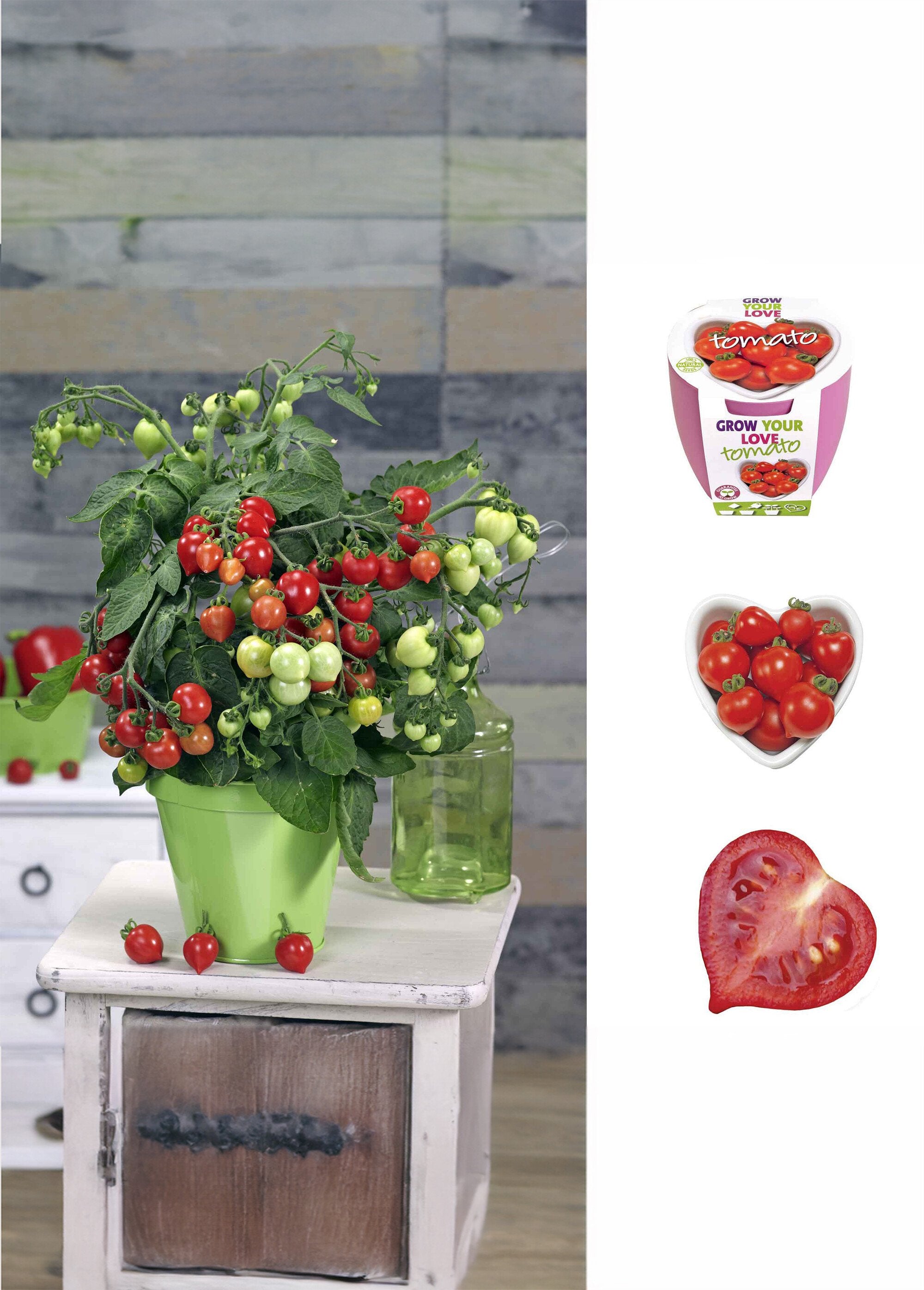 Tras el riego, obtendrá una abundante cosecha de deliciosos minitomates en forma de corazón. Esta planta también puede cultivarse en un balcón o una terraza. Variedad en forma de corazón (Solanum lycopersicum), resistente a plagas y enfermedades.