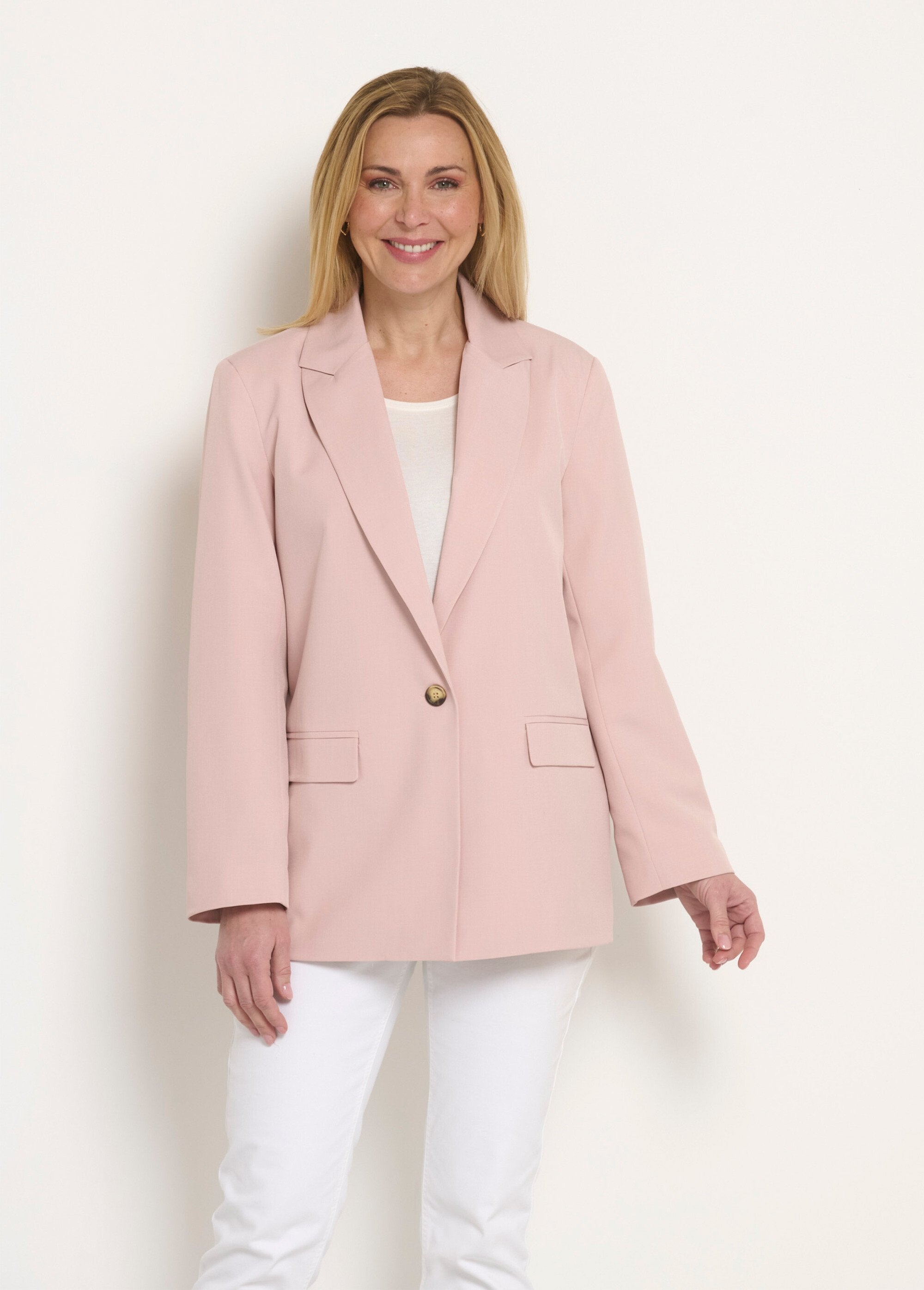 Chaqueta larga de 1 botón con cuello sastre  Rosa