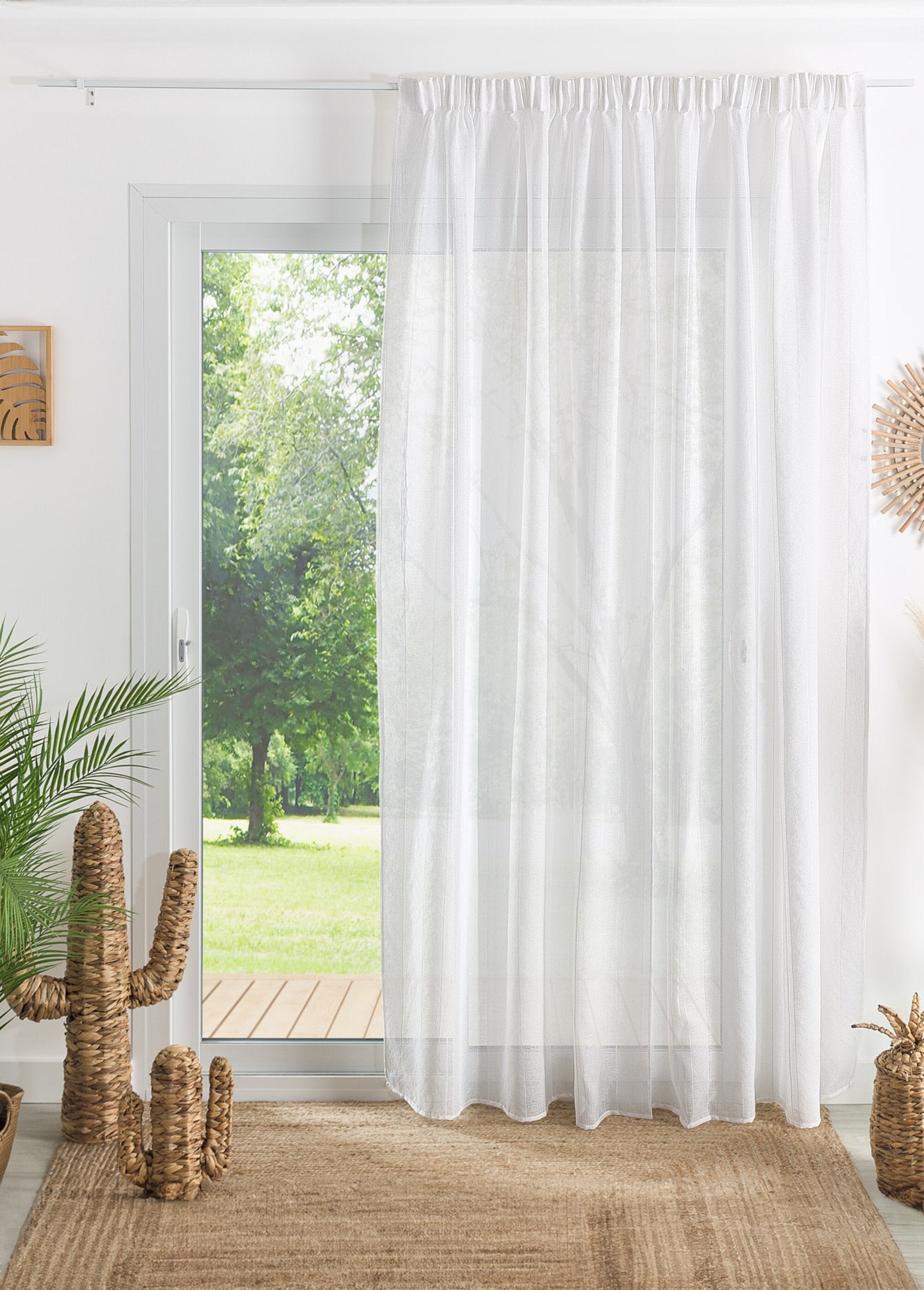Cortina transparente de tejido elegante, trenza fruncida  Blanco, Blanca